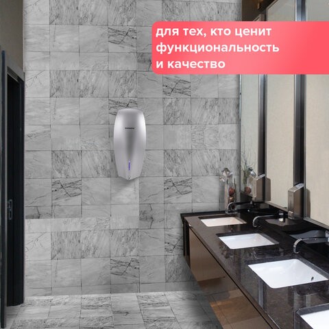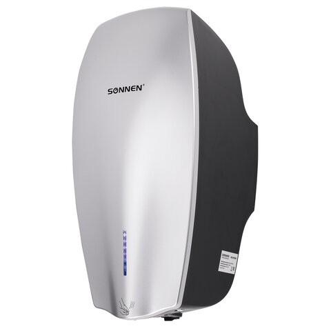 Мощность 1200 Вт обеспечивает время сушки рук за ~7 секунд. Стандарт IPX1 гарантирует защиту от брызг. Включается и выключается сушилка автоматически при помощи инфракрасного сенсора. Эргономичный дизайн, надежная конструкция и доступная цена делают данную модель идеальным вариантом для мест с невысокой проходимостью. В комплект входит набор для монтажа: шурупы с пластиковыми дюбелями и настенный кронштейн из нержавеющей стали. Подключается к сети 220V стандартной евровилкой. Данный товар сочетает в себе доступную цену и хорошие показатели производительности, поэтому его можно смело отнести к среднему ценовому сегменту.
